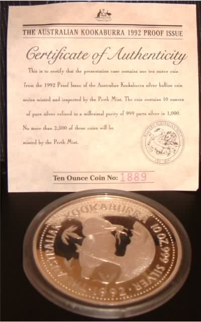 10oz Pure (.999) silver 75mm dia Boxed & COA