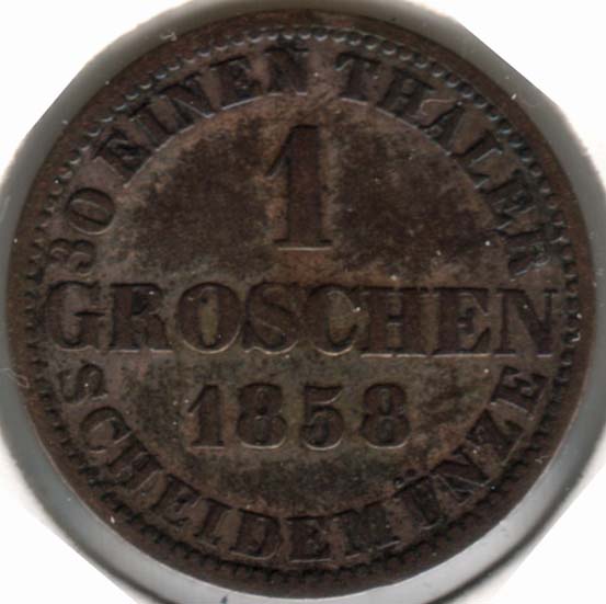 1 Groschen (silver) 1858B 236 x06x.jpg (53993 bytes) x06xx.jpg (53127 bytes) Horse F 1.50sold