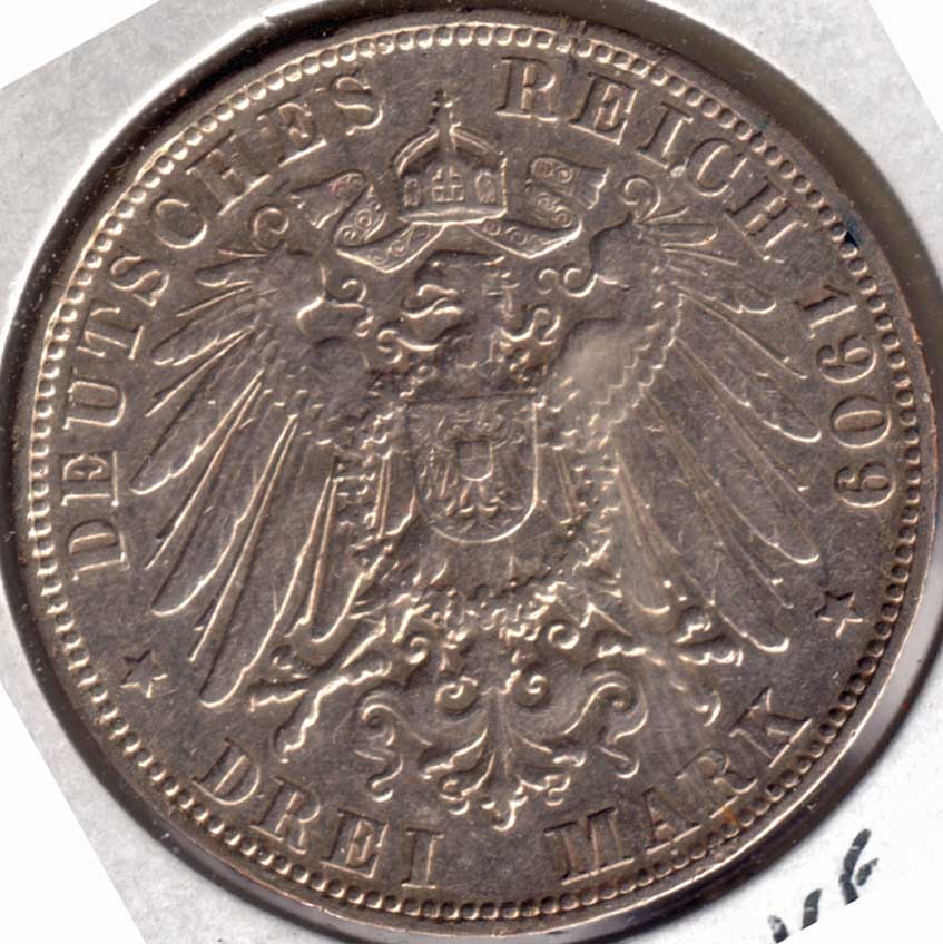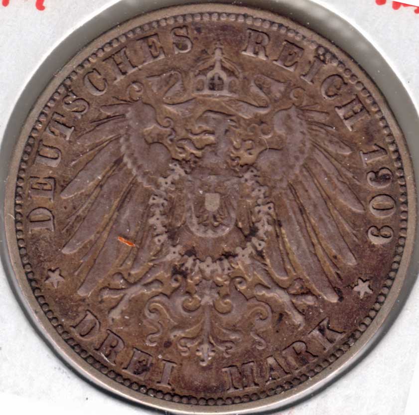 3 Mark (silver) 1909J 296 2244.jpg (123200 bytes) 2244x.jpg (94090 bytes)   VF 25.00