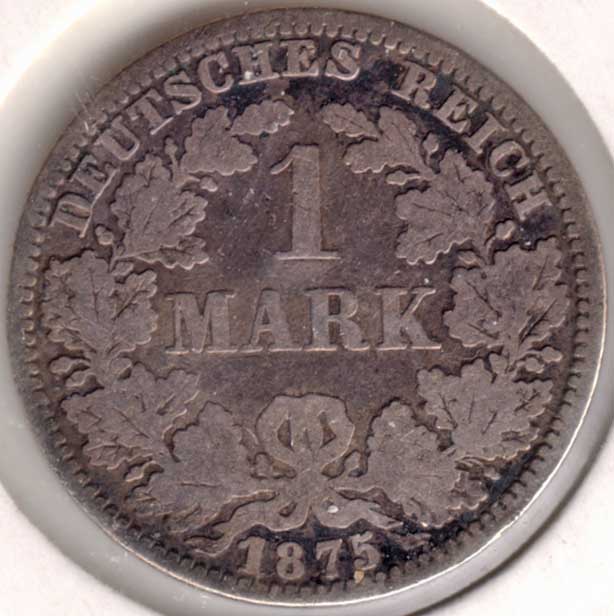 1 Mark (silver) 1875A 69cc.jpg (69638 bytes) 69ccx.jpg (51245 bytes)   VG 3.90