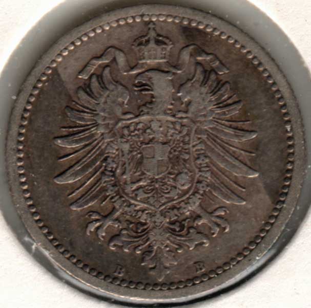 1 Mark (silver) 1874A 7 g80yh.jpg (80447 bytes) g80yhx.jpg (83595 bytes)   AF 4.25