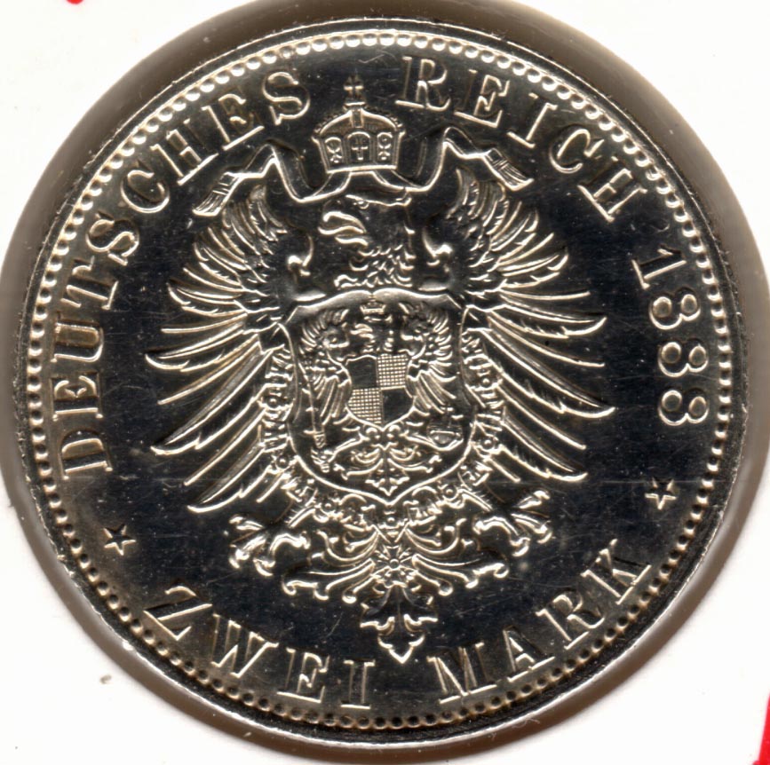 2 Mark (silver) 1888A 510 g579.jpg (188563 bytes) g579x.jpg (148084 bytes) Friedrich III   1 Year type   cleaned EF/GEF 35.00sold