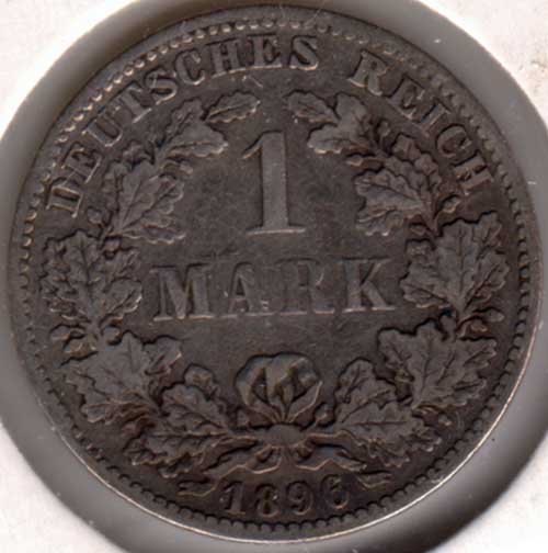 1 Mark (silver) 1896J 14 g8cc.jpg (51855 bytes) g8ccx.jpg (53123 bytes)   AF 6.50