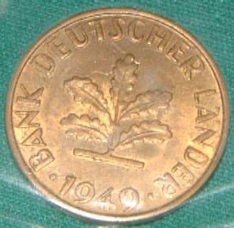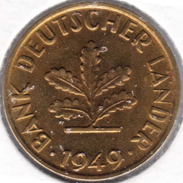 10 Pfennig 1949G 103 ger80by.jpg (41119 bytes) ger80byx.jpg (53755 bytes)   EF 4.00