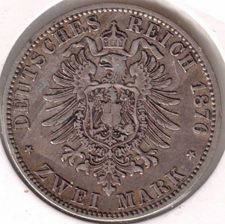 2 Mark (silver) 1876B 506 g11kv.jpg (81928 bytes) toned AF 7.00