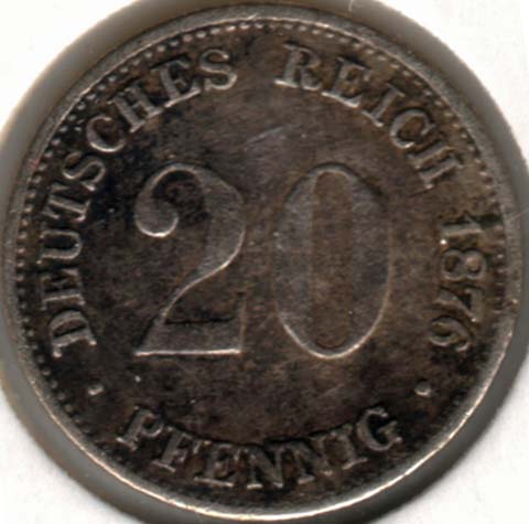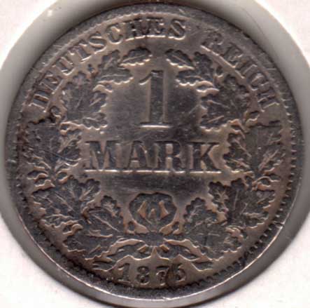 1 Mark (silver) 1876A 7 ger4pu.jpg (78298 bytes) ger4pux.jpg (54677 bytes)   VG/AF 3.50