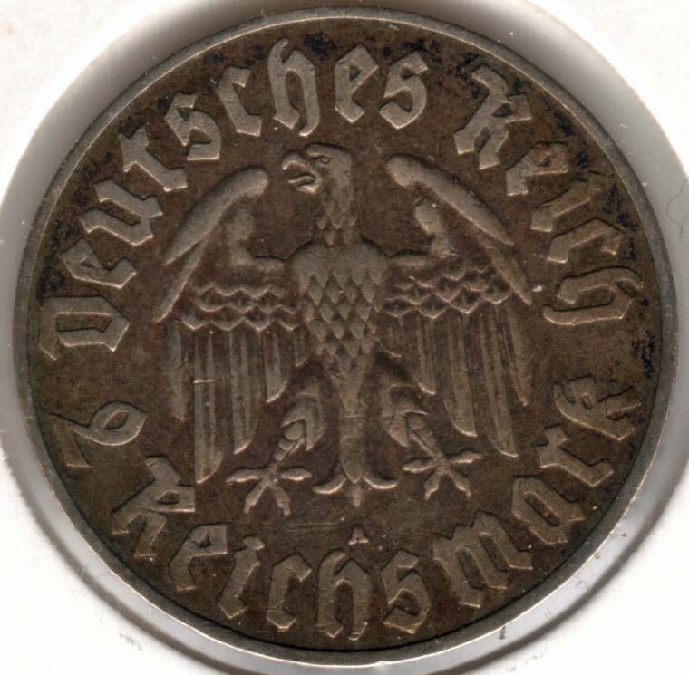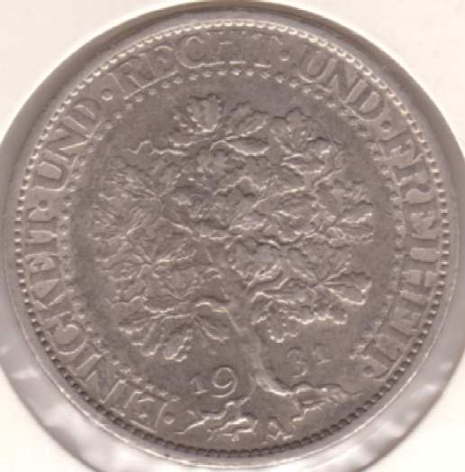 5 Reichsmark (silver) 1931A 56 g1931.jpg (26880 bytes)  g1931x.jpg (27536 bytes) Oak Tree GVF/EF 65.00