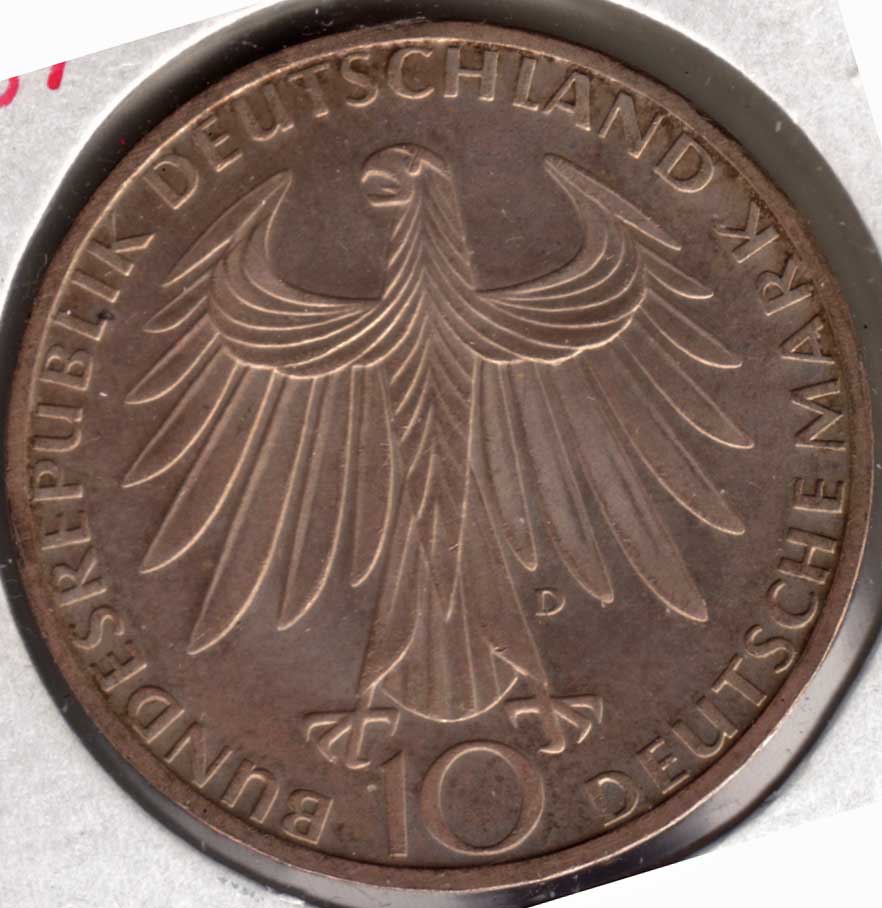 10 Mark (silver) 1972D 131 g50h.jpg (89971 bytes) g50hx.jpg (108730 bytes) Munich Olympics  Schleife Knot    couple of scratches AU 8.00