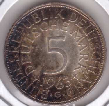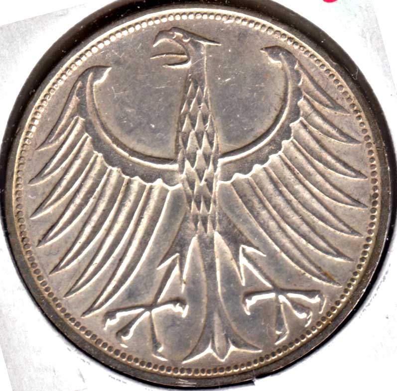 5 Mark (silver) 1957F 112.1 44by.jpg (82262 bytes) 44byx.jpg (82753 bytes)   VF/GVF 5.00