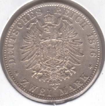 2 Mark (silver) 1876C 506 ger5yp.jpg (74519 bytes) ger5ypx.jpg (80266 bytes) cleaned VG 7.00