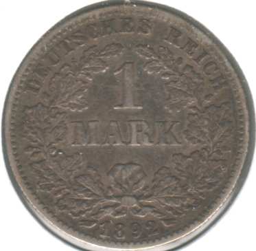 1 Mark (silver) 1892F 7 gy17.jpg (13770 bytes) gy17x.jpg (10264 bytes) toned VF 10.00