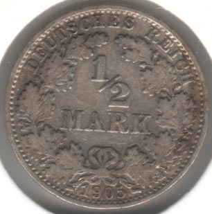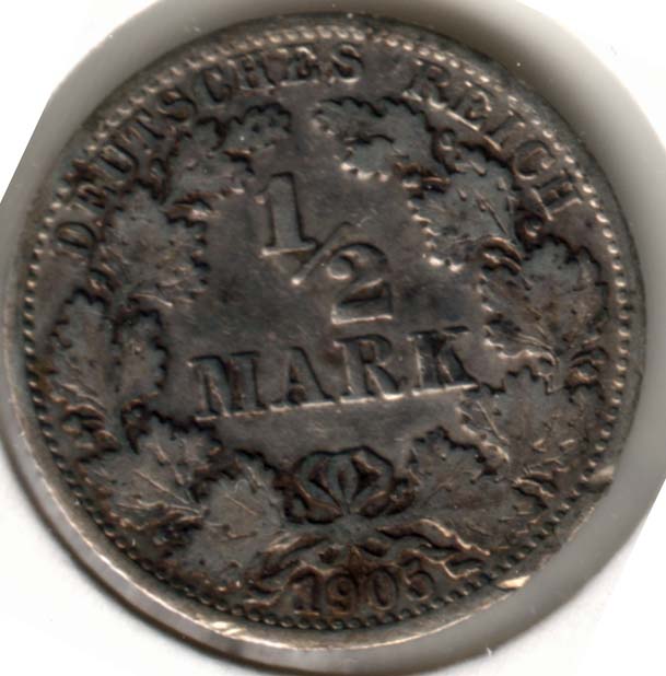 ½ Mark (silver) 1917A 17 48gy.jpg (70713 bytes) 48gyx.jpg (69867 bytes)   F/F+ 1.95
