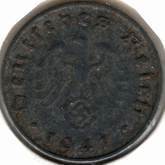 10 Reichspfennig 1940J 101 vv22.jpg (43517 bytes) vv22x.jpg (43298 bytes) Eagle & Swastika VF 1.00