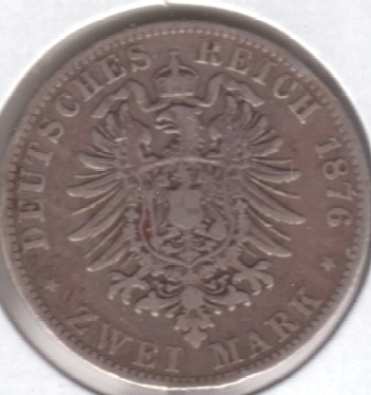 2 Mark (silver) 1876A 506 ger33h.jpg (93803 bytes) ger33hx.jpg (77224 bytes)   F 12.00