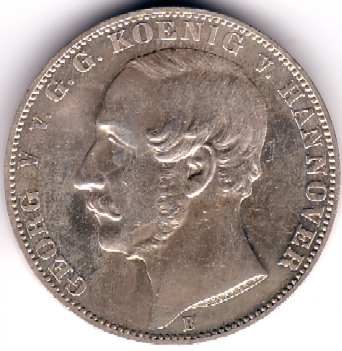 1 Thaler (silver) 1861B 230 hannover1861.jpg (25678 bytes) hannover1861x.jpg (19036 bytes) Georg V Prooflike fields    coin better than photo's show C-AU/Choice UNC 120.00