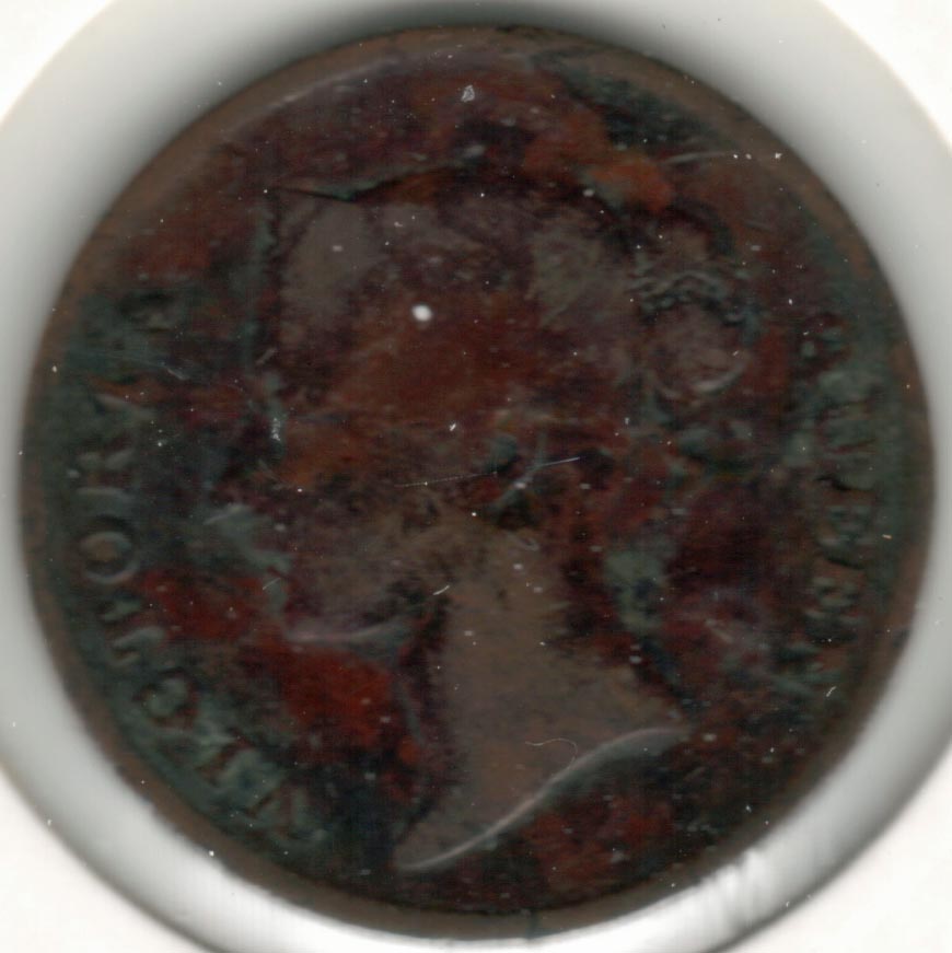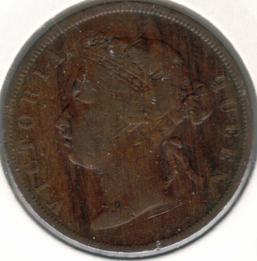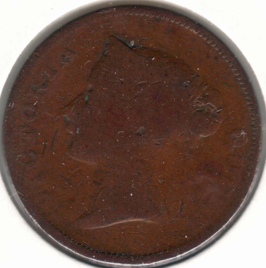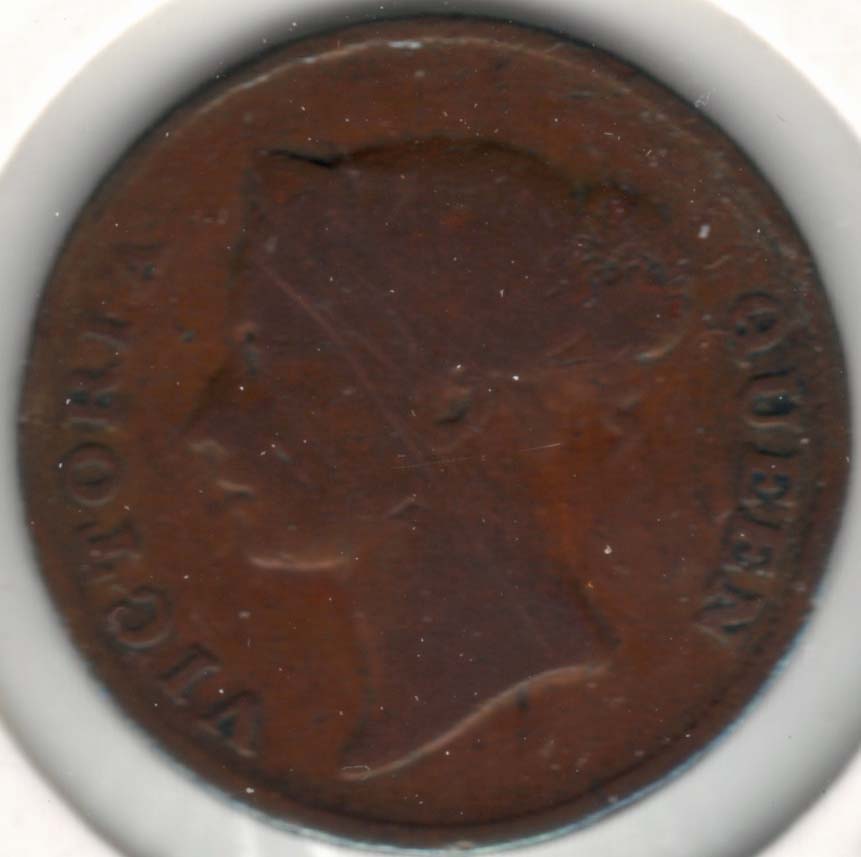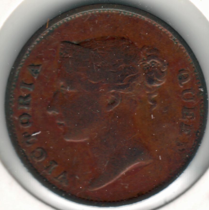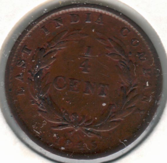 ¼ Cent 1845 1 ss03.jpg (60710 bytes) ss03x.jpg (67938 bytes) East India Company    dark patchy toning  F 8.00