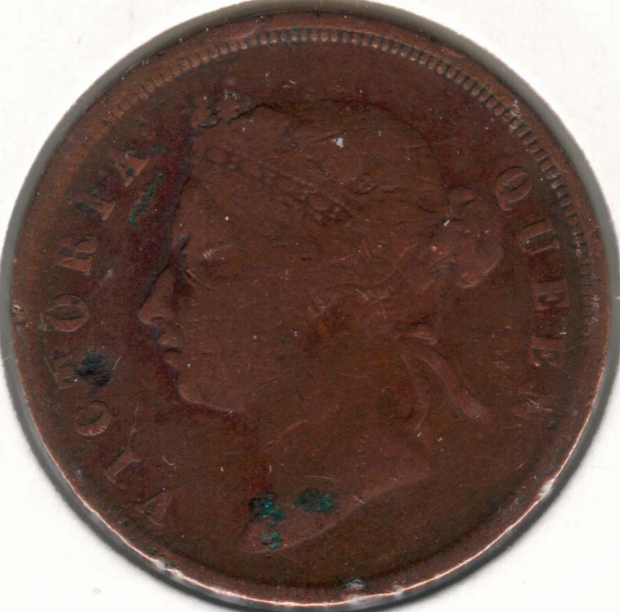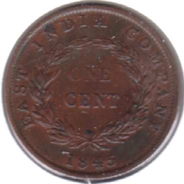 1 Cent 1845 3 ss09.jpg (74008 bytes) ss09x.jpg (77368 bytes) East India Company  minor stain on Obv AVG 2.75