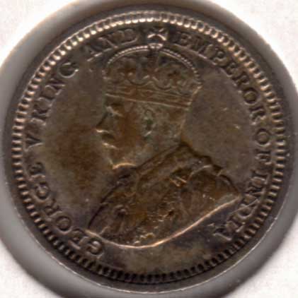5 Cents (silver) 1910B 20a v76af.jpg (43418 bytes) v76afx.jpg (38815 bytes) Die crack edge to beads through V in Five   1 Year Type Edward VII VF 3.50