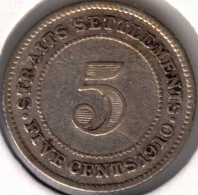 5 Cents (silver) 1910B 20a m23zz.jpg (44396 bytes) m23zzx.jpg (37772 bytes) 1 year type AVF 3.00