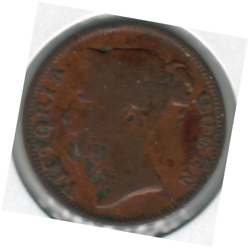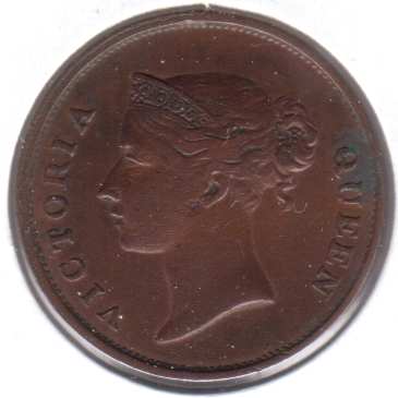 1 Cent 1845 3 2b6.jpg (90073 bytes) 2b6x.jpg (86227 bytes) East India Company Rotated die 10º Obv VG/AF 8.00