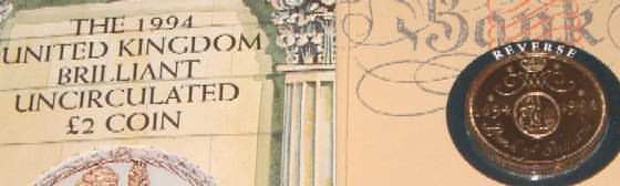 | 1994 British 2 Pound Coin Tercentenary of the Bank of England in official issue foldout flat pack (Nickel Brass) £2 |