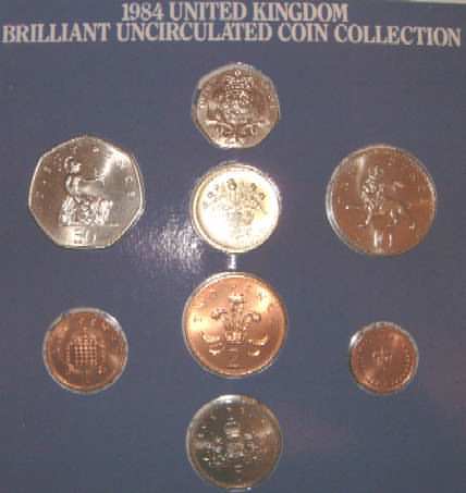 1984 Mint Set (Uncirculated) £1 Scottish Thistle for Scotland 50p,20p,10p,5p,2p,1p,½p Last year of issue and only issued in sets.In official issue foldout flat pack (Blister Pack) |