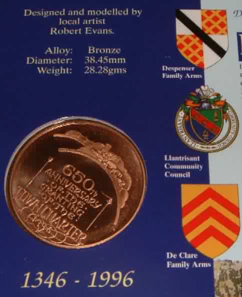 Llantrisant 650th Anniversary of the Granting of Town Charter 1346 -1996.Official issue by Royal Mint in flat pack.Size 38.45mm metal bronze