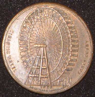 Earls Court London. Gigantic (Big , Ferris)  Wheel Earls Court. Brass 31mm dia, Obv Big wheel, Rev Wording stating weight, height,etc..  of wheel   By by Grupper & Co London.This was a token to operate an early Juke Box! As I understand it you put a penny in the slot, a voice at the other end said, ‘Which song do you want’ and then an operator proceeded to place an Edison Wax Cylinder on a machine, with the sound carrying up through headphones