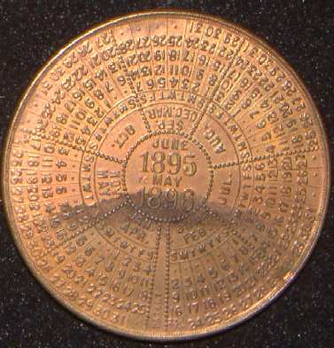 Earls Court London. Gigantic (Big , Ferris)  Wheel Earls Court. Brass (waxed filled) Medal being 39mm dia. Obv Big Wheel Earls Court. Rev Calendar for 1895 - 1896. by Grupper & Co London. For History of the wheel