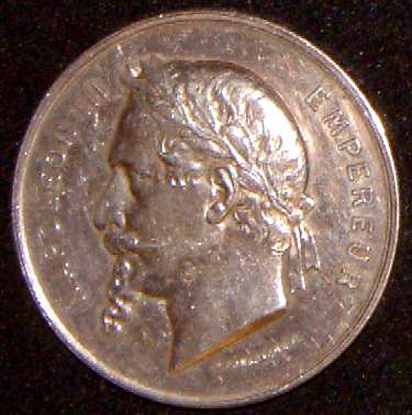 France. Paris Universal Exposition 1867. Large silver medal issued to William Franklin and Sons. Obv Bust of Napoleon III. Size 50mm in silver by H.Ponscarme F