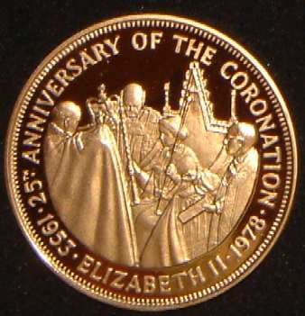 Elizabeth II (British) 25th Anniversary of the Coronation. Silver Proof gold plated & Hallmarked with special Jubilee hallmark. size 39mm.Issued by Pobjoy Mint