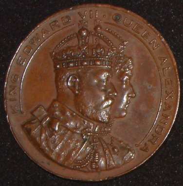 Cardiff Docks Royal Visit 1907.Royal Visit to Cardiff (Wales) and Opening of Queen Alexandra Dock. Obv King Edward VII & Queen Alexandra , Rev Cardiff coat of Arms. Bronze 52mm dia.The dock was built on recaimed land from the sea by Bute Docks & Taff Vale Railway Co. Spiridion & Sans. Few light edge knocks